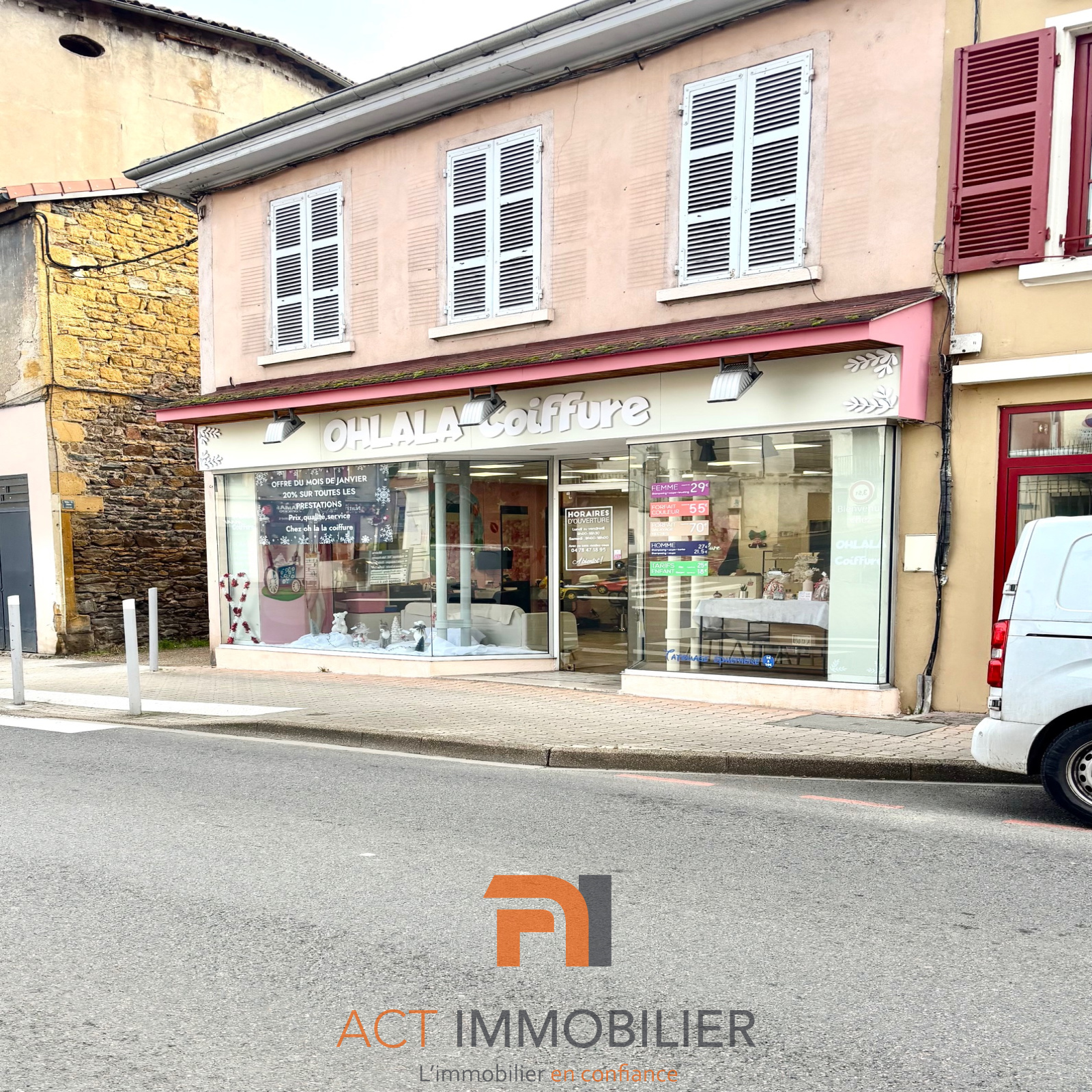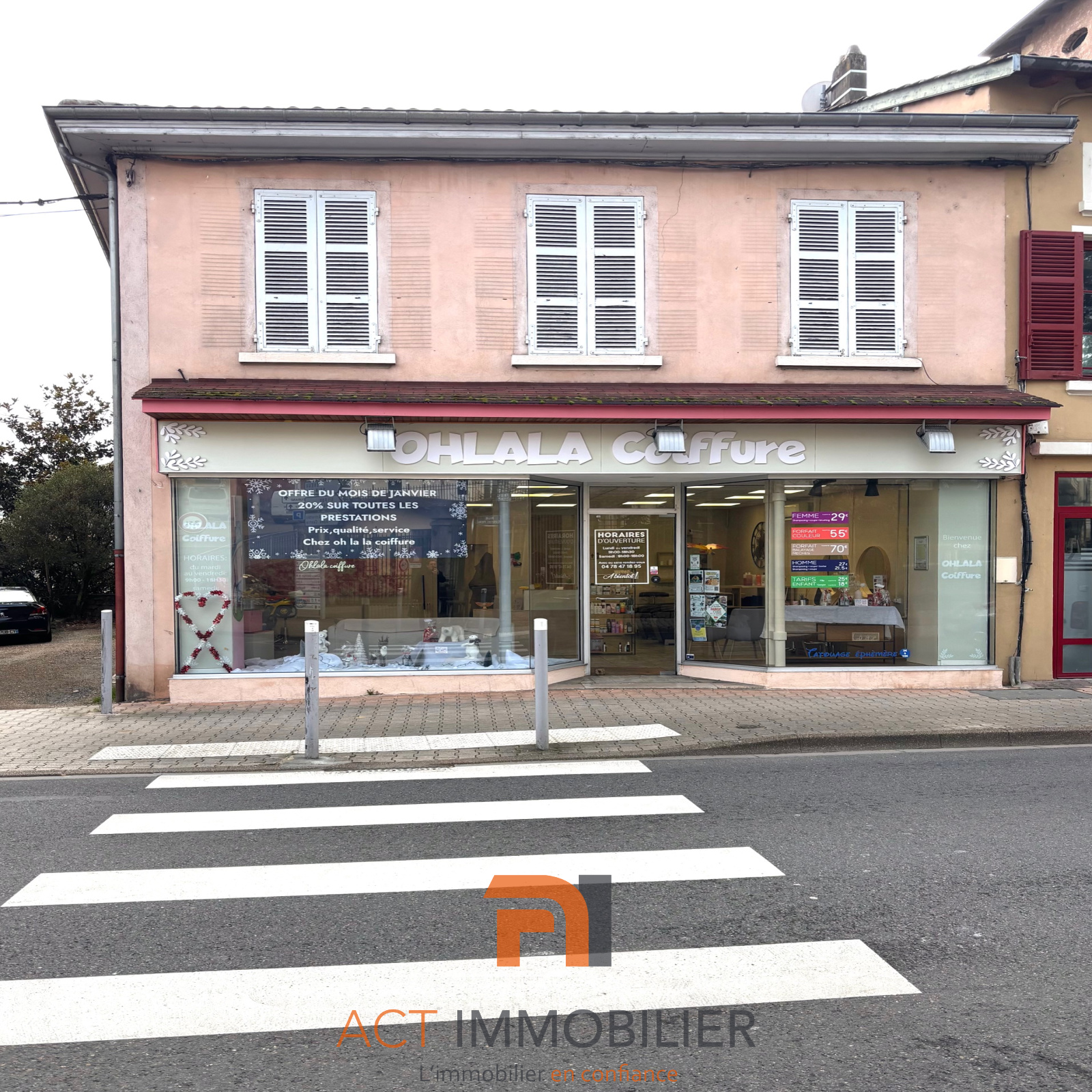 Au rez-de-chaussée, salon de coiffure 74 m2 parfaitement entretenu, bail en cours depuis 2018.