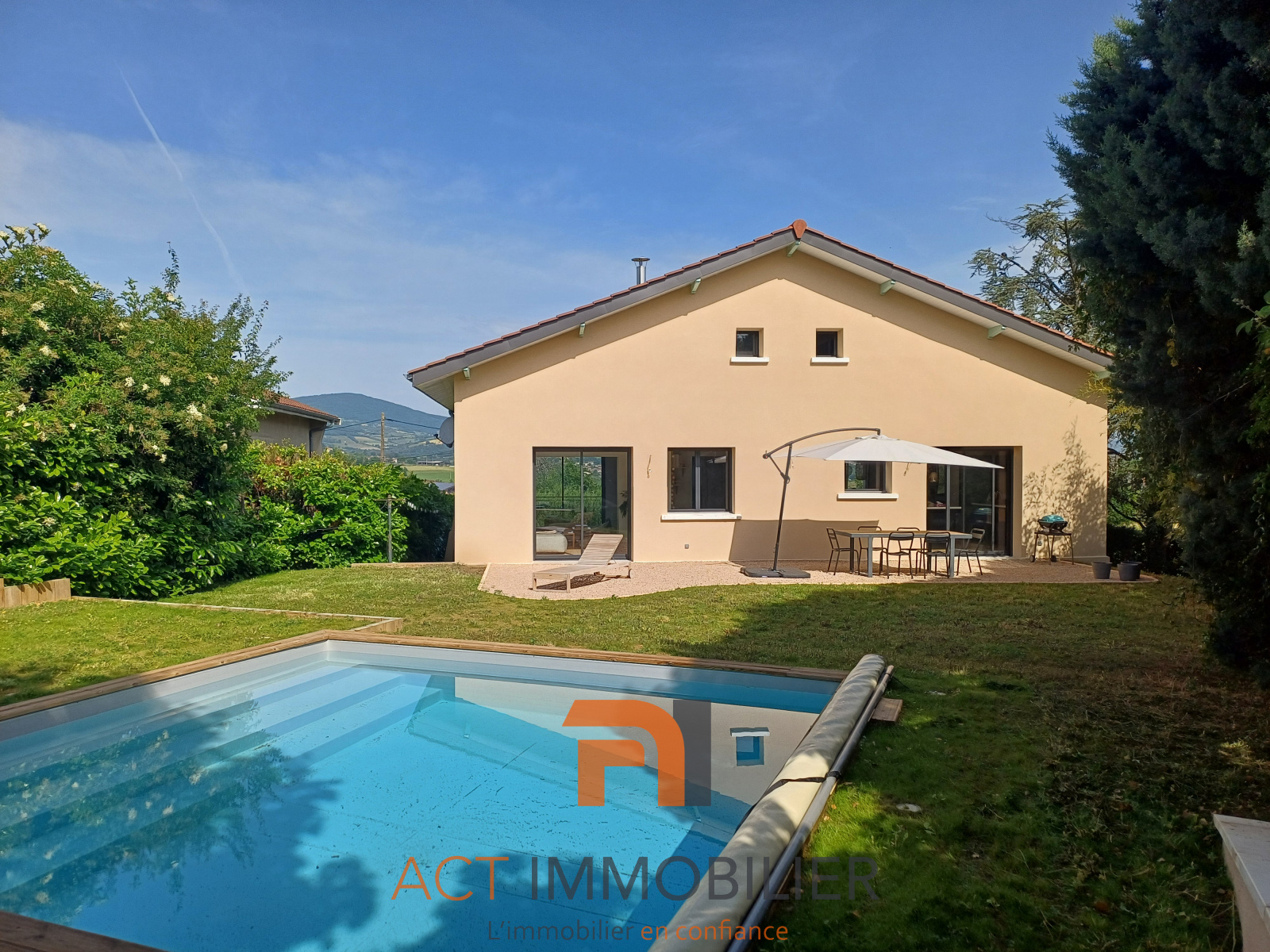 L'entrée s'ouvre sur le grand salon très lumineux, exposé Est Ouest d'une surface de 30 m2 recouvert d'un parquet massif, doté d'une baie vitrée vous invitant à vous rapprocher de la terrasse, du jardin et de la piscine. Cette pièce conviviale donne également sur le balcon qui vous dévoile un panorama exceptionnel. Le bureau discrètement disposé face au jardin est vitré côté salon. La salle à manger ouverte sur la cuisine haut de gamme dotée d'un îlot central offre un espace convivial spacieux de 31 m2. L'escalier en bois nous transporte vers les 3 belles chambres dont l'une avec sa salle d'eau privative, une pièce de jeux, une salle de bains avec douche et baignoire. Le jardin, la terrasse et la piscine en structure bois vous séduiront et annoncent déjà des soirées généreuses entre amis et en famille. Le sous-sol garage peut accueillir un véhicule et des rangements, une buanderie, une cave, une chaufferie avec une chaudière gaz de marque Frisquet.ualité ne vous laissera pas indifférents.